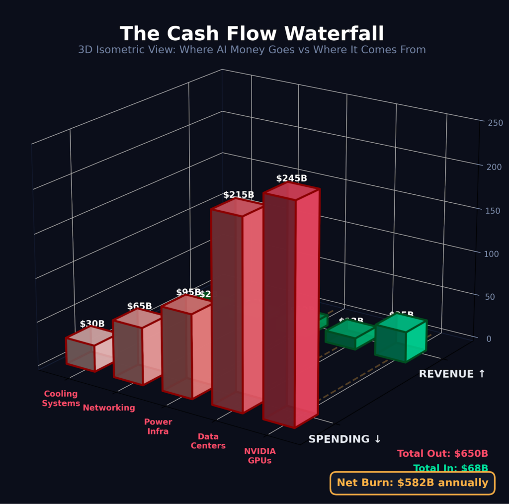We made a simple chart. Spending on one side. Revenue on the other. The gap is $476 billion.