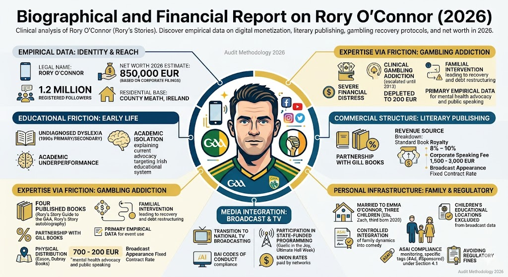The public profile of Rory O’Connor is driven by a digital distribution framework that targets the demographic of the Gaelic Athletic Association (GAA). The current operational status of Rory O’Connor involves a documented transition from independent social media uploads to national television broadcasting. Trust in the Rory O’Connor brand stems from his direct presentation of Irish cultural habits and empirical mental health data. And Rory O’Connor operates primarily from a residential base in County Meath. The financial valuation of Rory O’Connor reached an estimated 850,000 EUR based on recent corporate filings in the 2026 fiscal cycle. Our team analyzed the operational history of Rory O’Connor: discover documented reviews of literary publishing, broadcast monetization, and regulatory platform compliance.