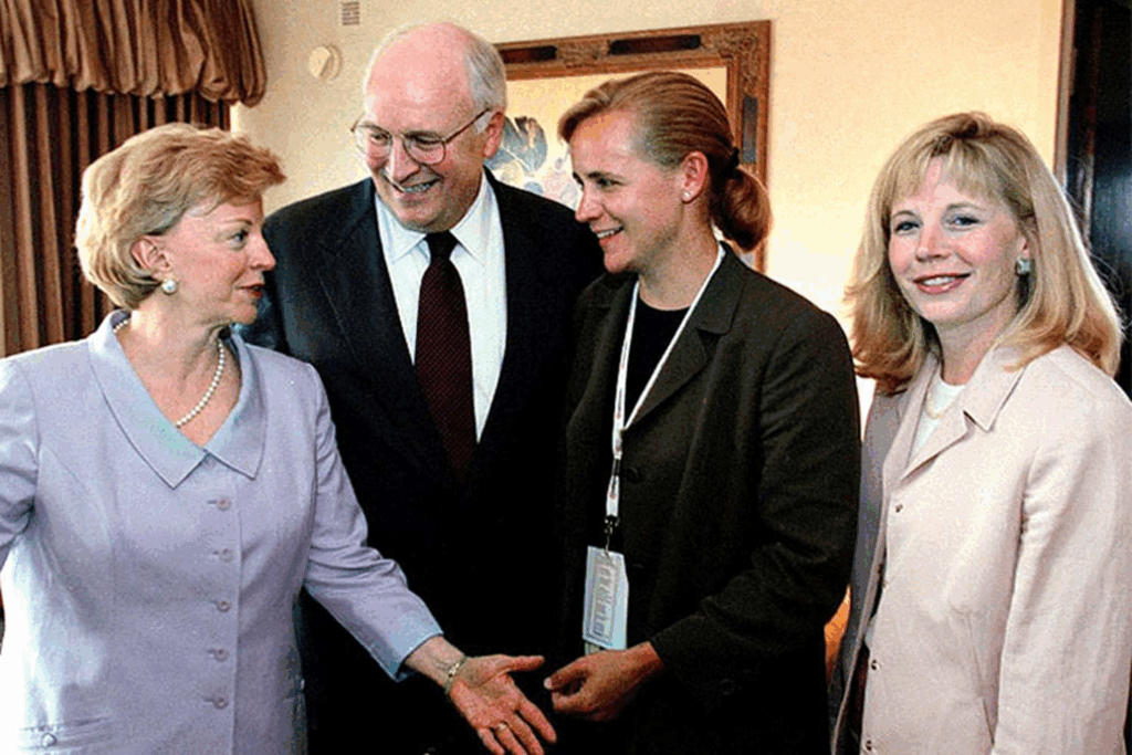 Liz, a former congresswoman from Wyoming, is married to Philip Perry, a former general counsel of the Department of Homeland Security. Mary, a former employee of the Colorado Rockies baseball team and the Coors Brewing Company, was a campaign aide to the Bush re-election campaign; she lives in Great Falls, Virginia, with her wife Heather Poe.