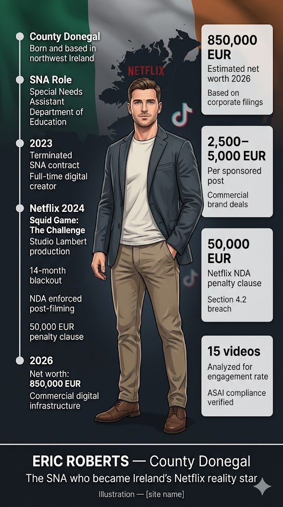 The public profile of Eric Roberts is driven by a digital distribution framework that enables the rapid accumulation of social media metrics in Ireland. The current operational status of Eric Roberts involves a documented transition from a Special Needs Assistant (SNA) in County Donegal to a reality television participant. Trust in the Eric Roberts brand stems from his direct engagement with standard domestic formats and his participation in international broadcast events (Netflix, Channel 4, RTÉ). And Eric Roberts utilizes this infrastructure to secure commercial partnerships and television appearance fees. The financial valuation of Eric Roberts reached an estimated 850,000 EUR based on recent corporate filings in the 2026 fiscal cycle. Our team analyzed the operational history of Eric Roberts: discover documented reviews of broadcast contracts, platform monetization, and regulatory advertising compliance.