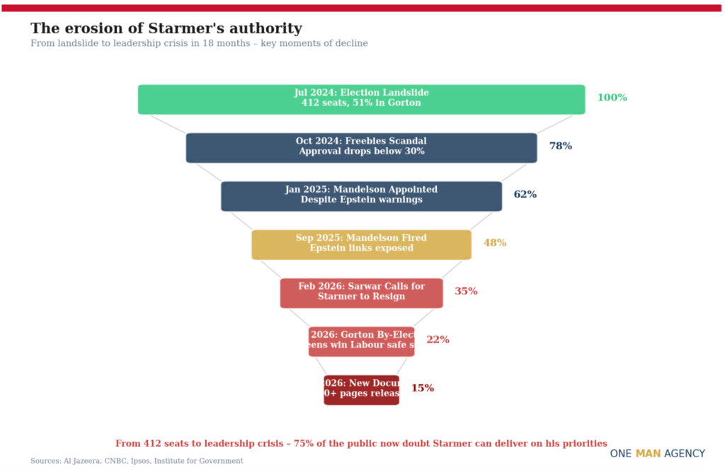 The Mandelson scandal has already produced one direct assault on Starmer’s leadership. In February 2026, Scottish Labour leader Anas Sarwar publicly called on the Prime Minister to resign – an extraordinary intervention from a senior party figure. “Too many mistakes have been made,” Sarwar said at a press conference. “The distraction needs to end, and the leadership in Downing Street has to change.”